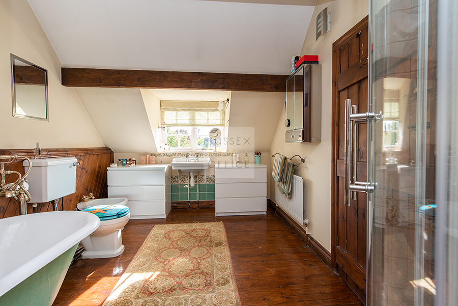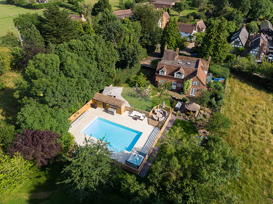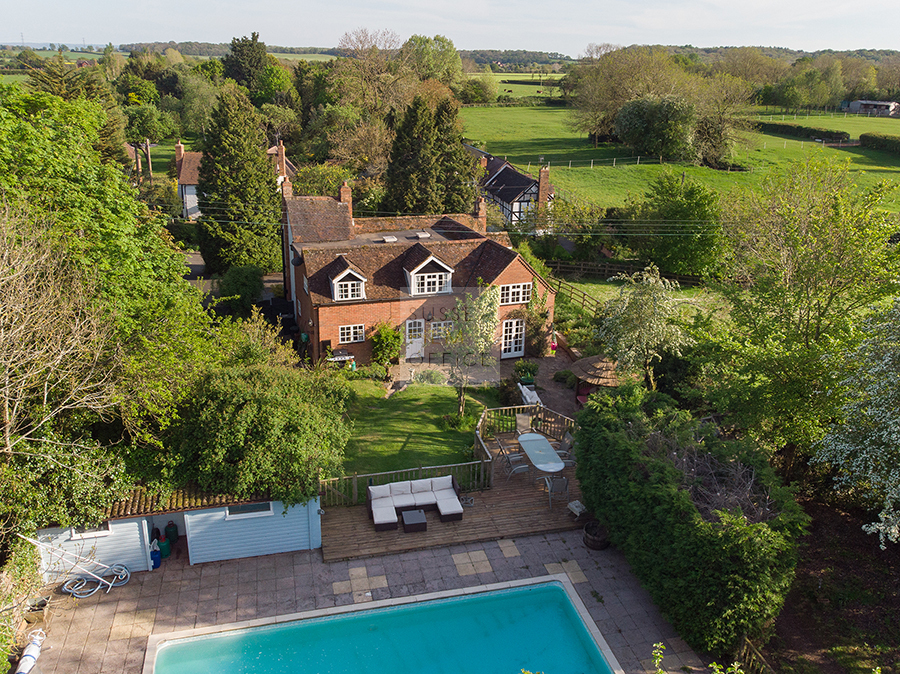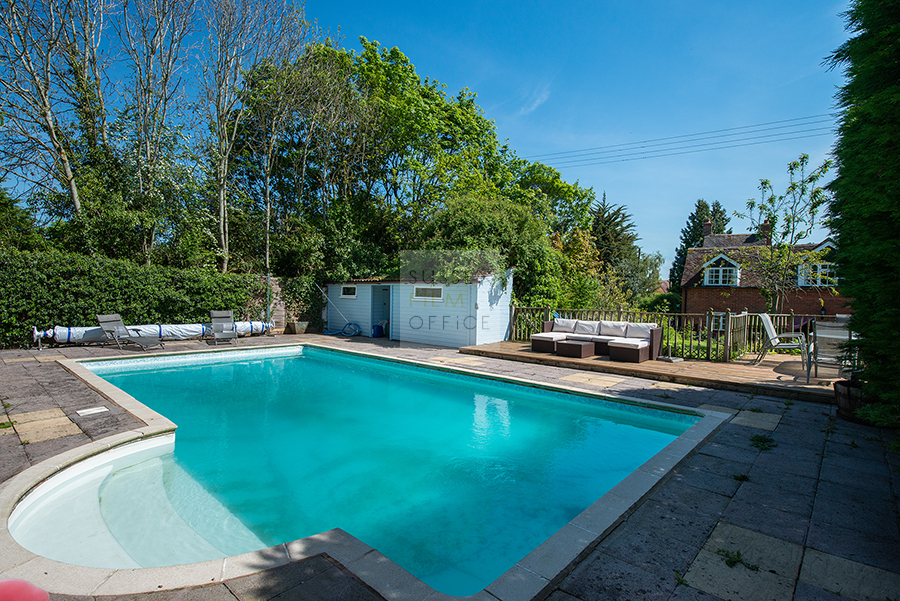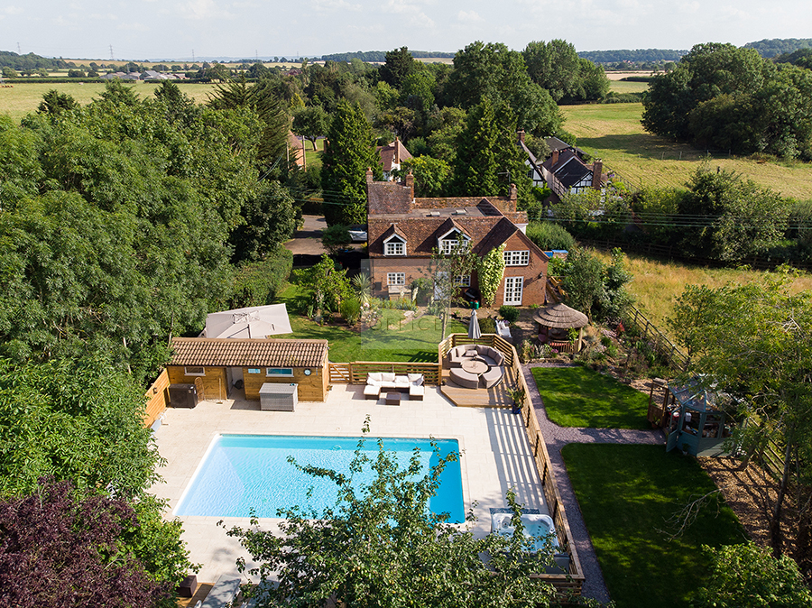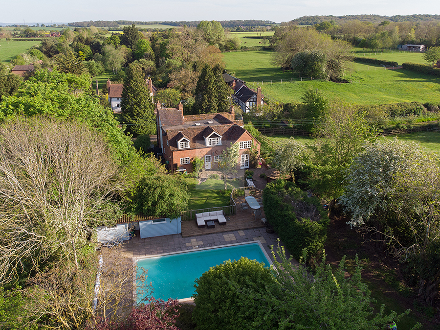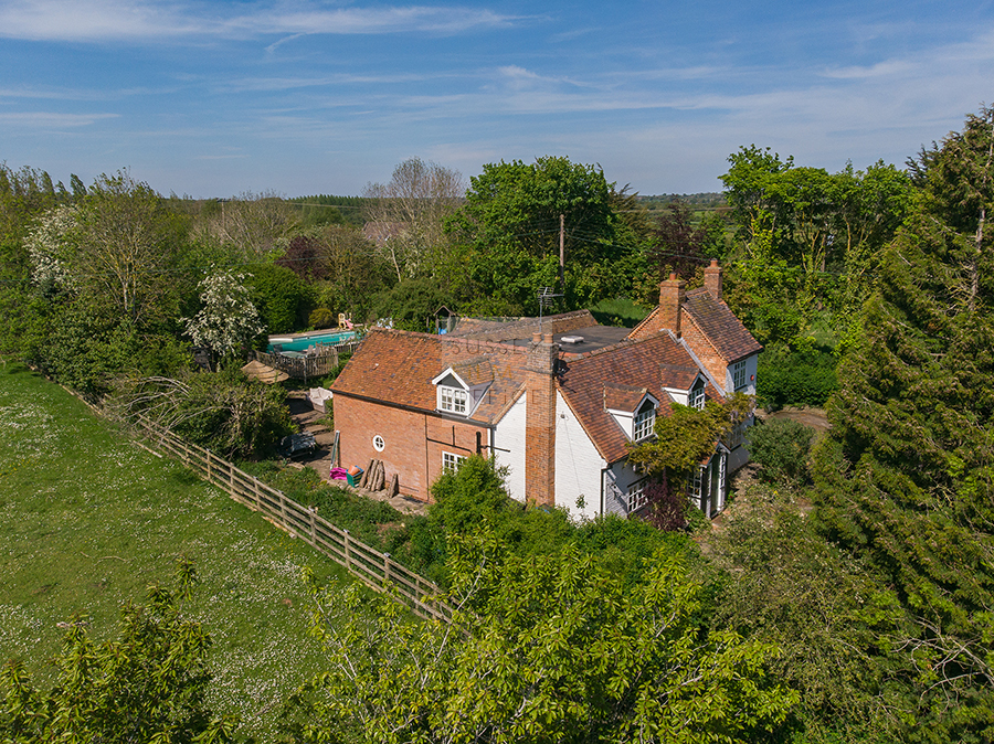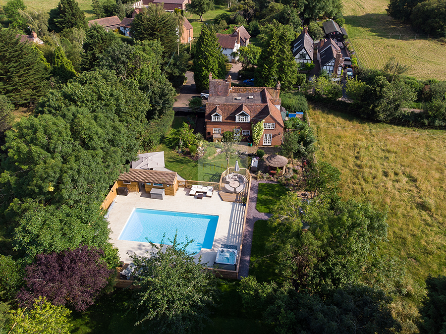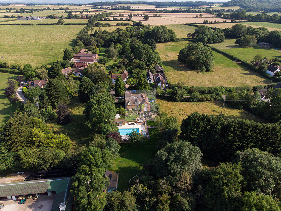 Beautiful period property set in a peaceful, rural location, surrounded by fields. The property comprises 5 bedrooms, lounge, kitchen, dining room, and 2 bathrooms. Internal features include exposed beams, open fireplaces, inglenook, flagstone flooring, wood flooring, wood panelling, freestanding bath, and plenty of charm and character. Outside there is a large garden with a swimming pool with terrace, jacuzzi, summer house, large sheds, thatched heated breeze house, pergola, and a decking area. This is an absolutely stunning location for filming and photography.