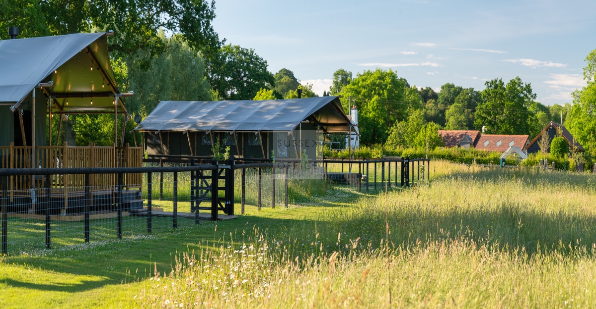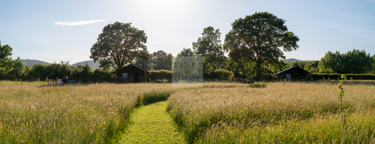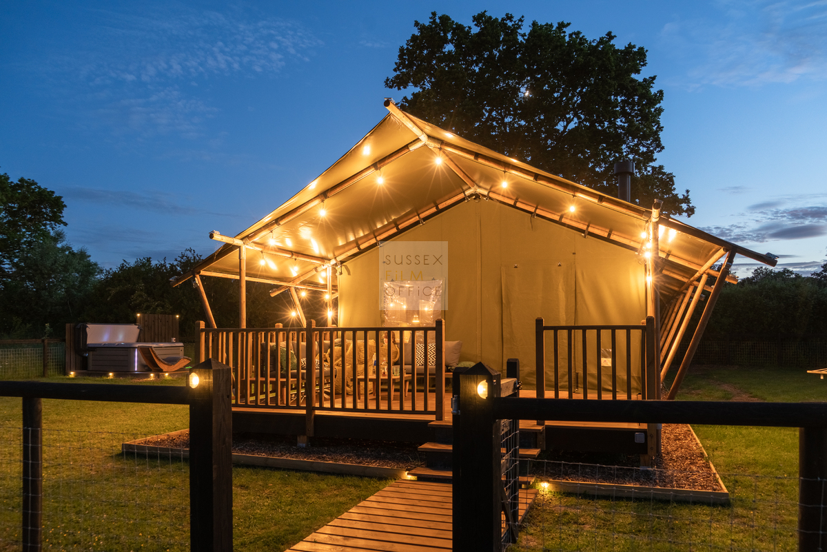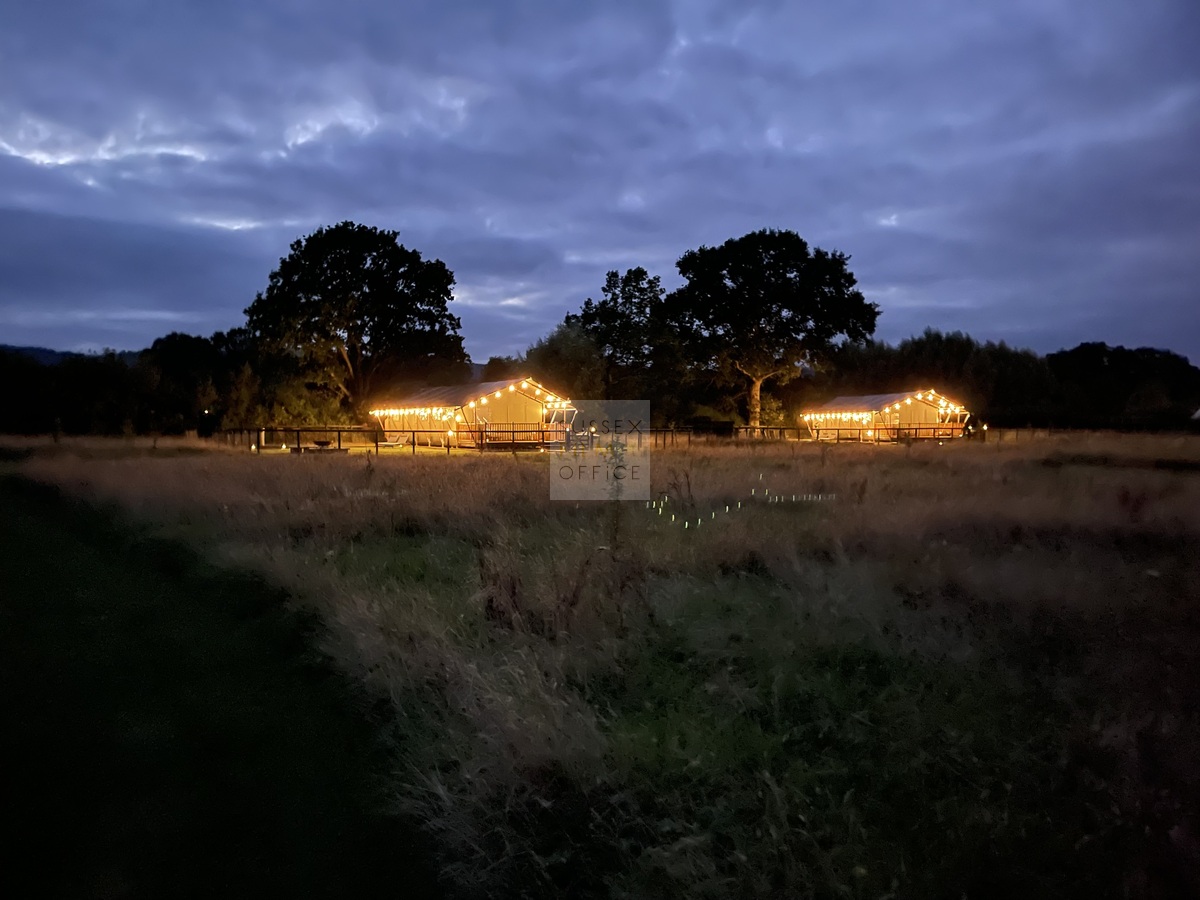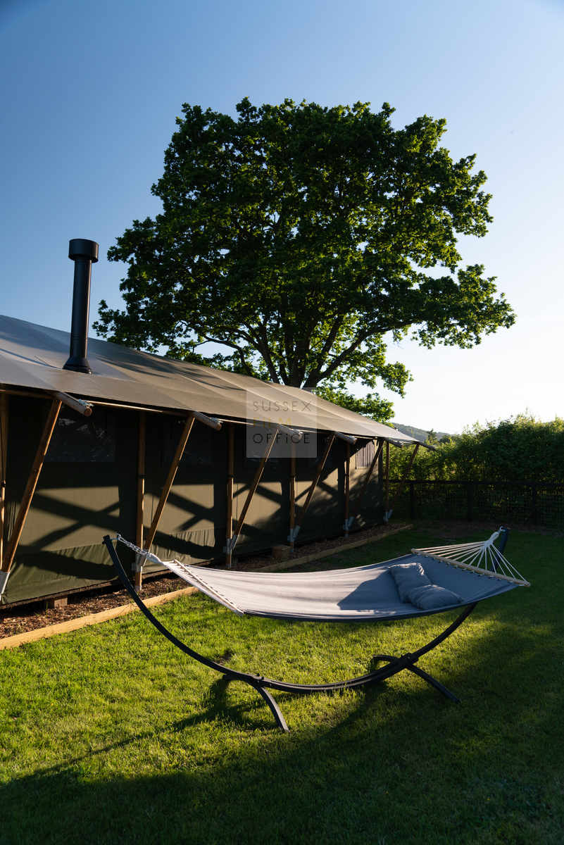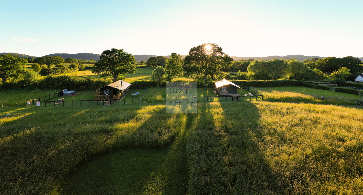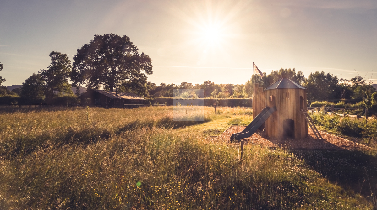 Luxury glamping retreat located down a very picturesque old country lane on a restored smallholding. The site is a nature lover’s haven set in idyllic surroundings, overlooking a 3 acre wildflower meadow and set against a backdrop of the majestic Malvern Hills. The retreat consists of 2 1920s-inspired safari lodges each with comfy sofa seating, 2 double bedrooms and two bunks, well-equipped kitchen, and a plumbed in bathroom with rainwater shower, and toilet. Wider facilities at the retreat include an on-site tented spa, secure gardens, electric hydrotherapy hot tubs, hammocks, nature area with willow dens and pond, safari jungle camp (in summer months – bell tent created as a craft tent with mini tents surrounding it decorated in a jungle theme), wooden adventure castle fort, and bikes for hire. Aside from the glamping area, there is a 17th century timber framed cottage, Malvern stone and weatherboarded barn, 4 bay oak garage, cottage gardens, kitchen garden, chicken coop in smaller meadow, utility barn, and an onsite private car park for up to 8-10 cars. A stunning location for filming and photography!