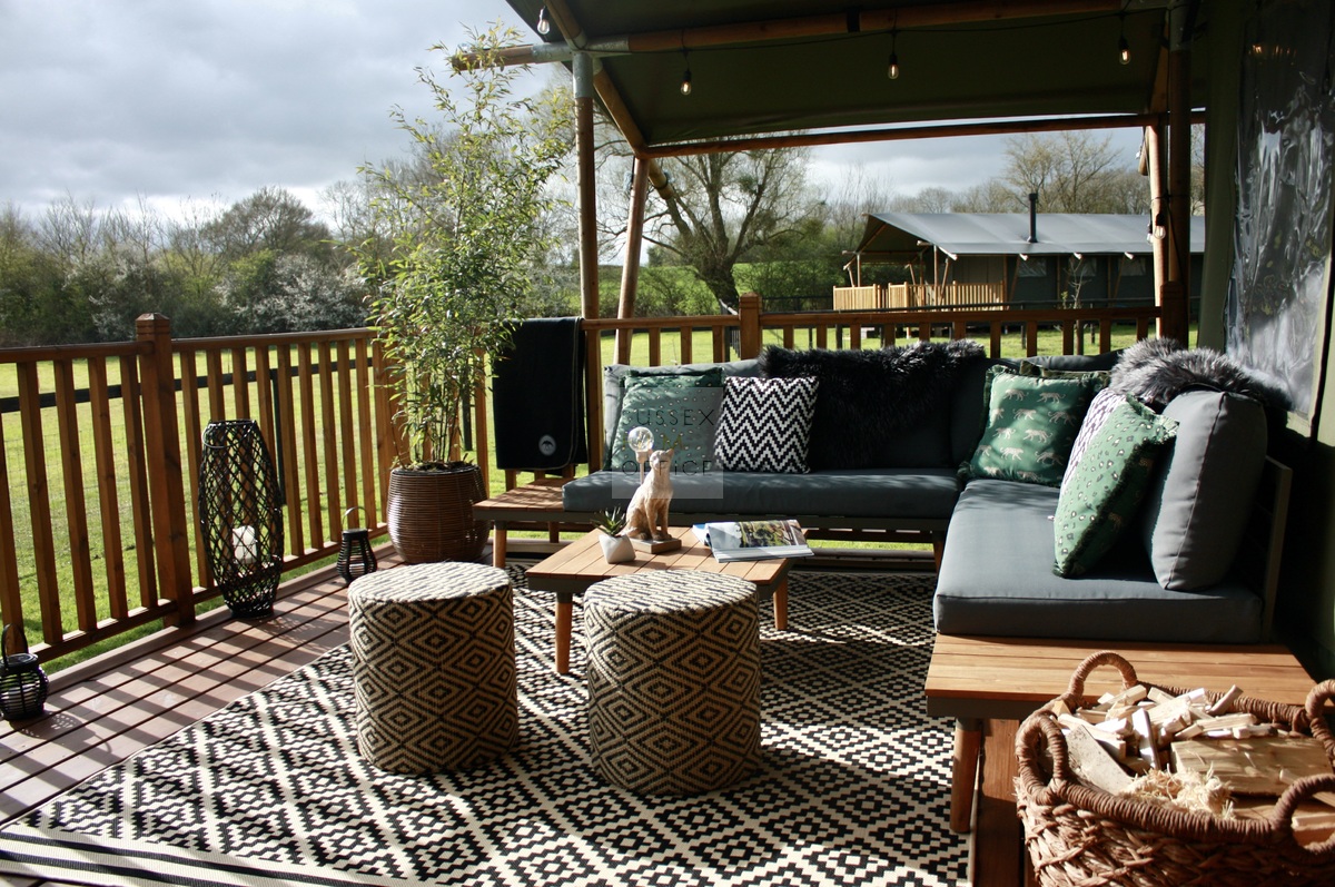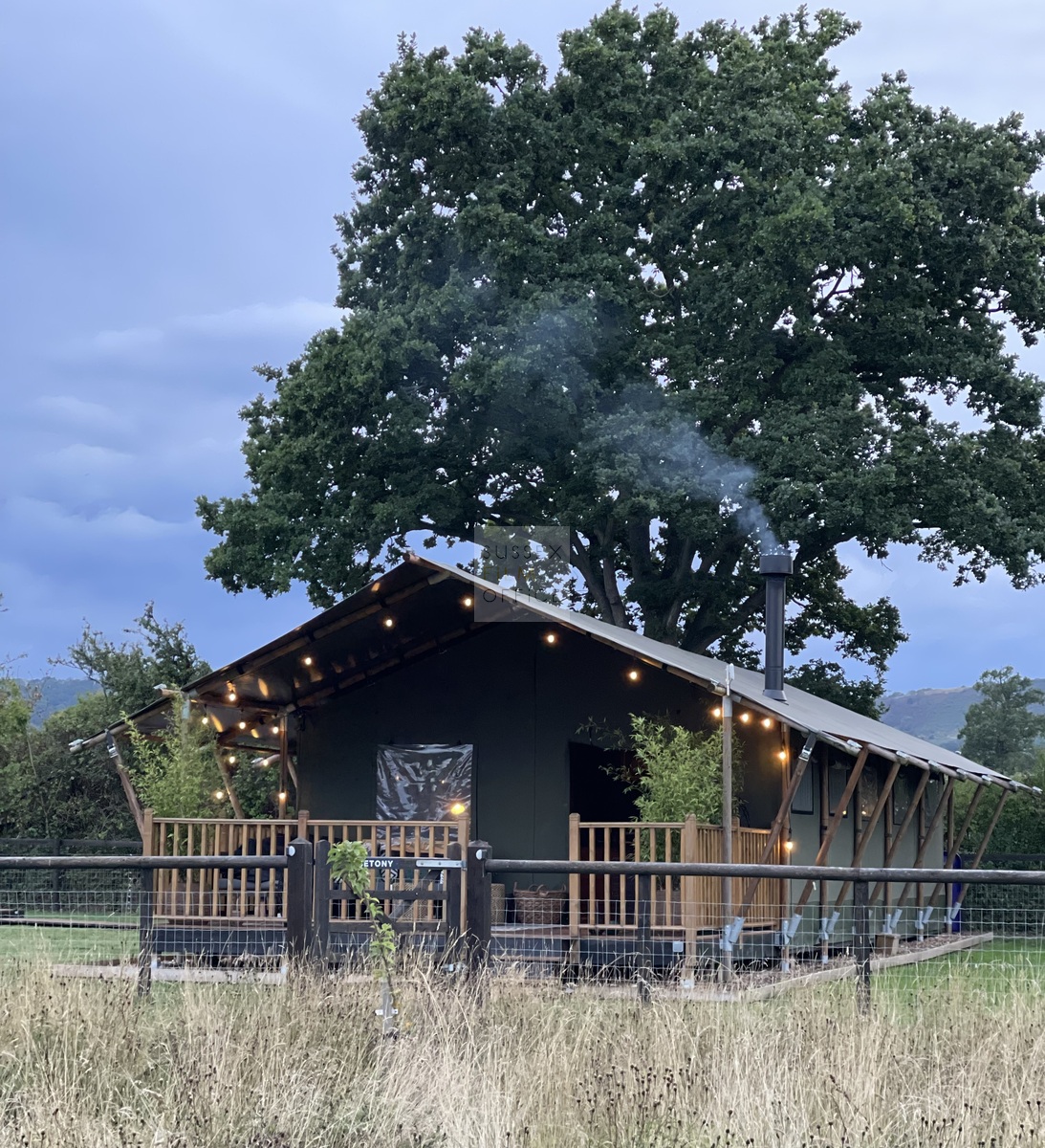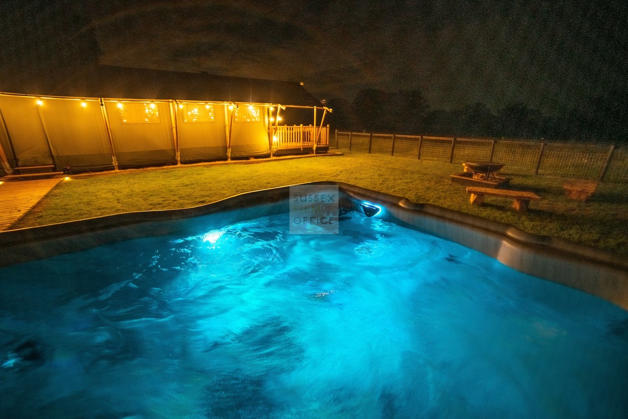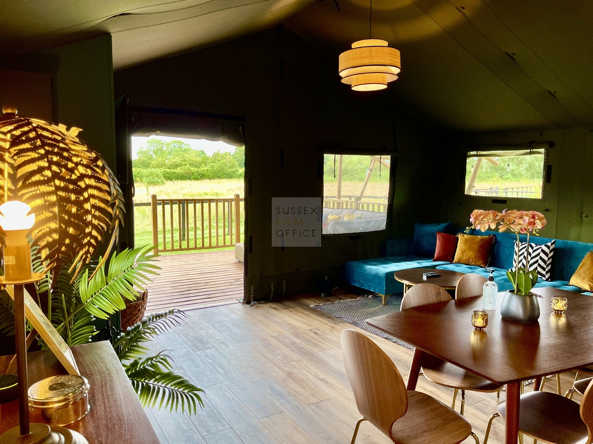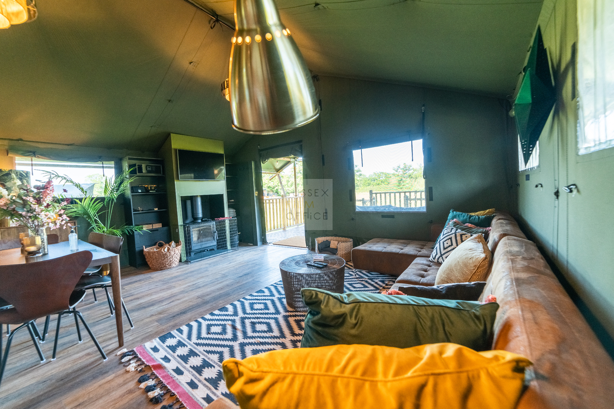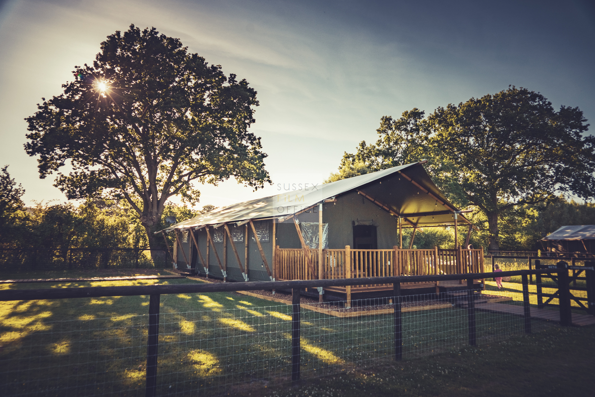 Luxury glamping retreat located down a very picturesque old country lane on a restored smallholding. The site is a nature lover’s haven set in idyllic surroundings, overlooking a 3 acre wildflower meadow and set against a backdrop of the majestic Malvern Hills. The retreat consists of 2 1920s-inspired safari lodges each with comfy sofa seating, 2 double bedrooms and two bunks, well-equipped kitchen, and a plumbed in bathroom with rainwater shower, and toilet. Wider facilities at the retreat include an on-site tented spa, secure gardens, electric hydrotherapy hot tubs, hammocks, nature area with willow dens and pond, safari jungle camp (in summer months – bell tent created as a craft tent with mini tents surrounding it decorated in a jungle theme), wooden adventure castle fort, and bikes for hire. Aside from the glamping area, there is a 17th century timber framed cottage, Malvern stone and weatherboarded barn, 4 bay oak garage, cottage gardens, kitchen garden, chicken coop in smaller meadow, utility barn, and an onsite private car park for up to 8-10 cars. A stunning location for filming and photography!