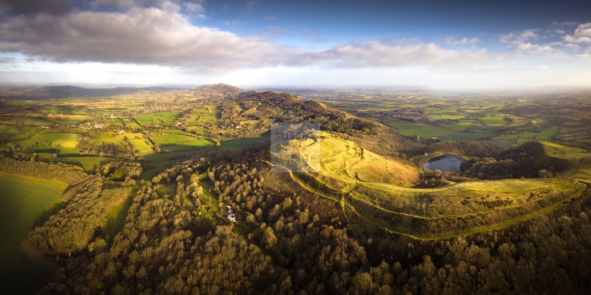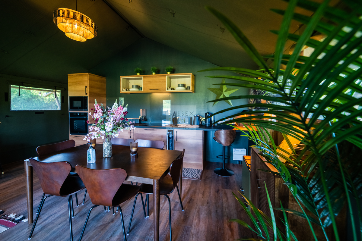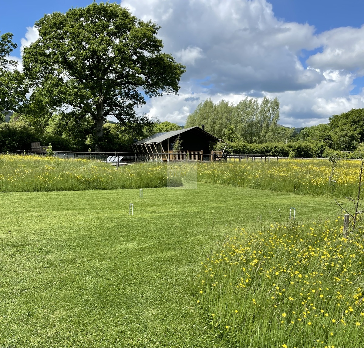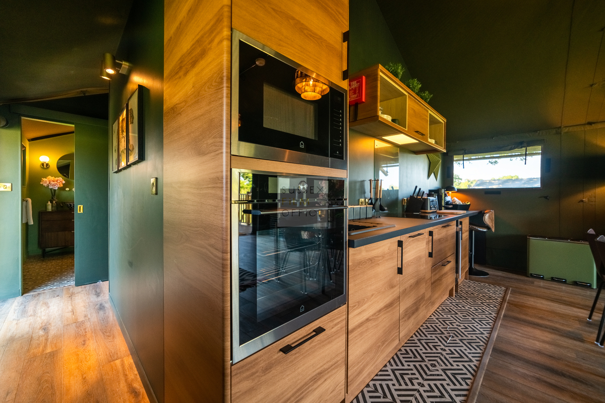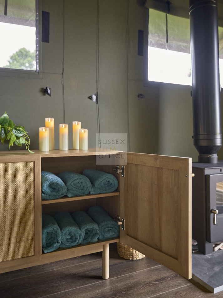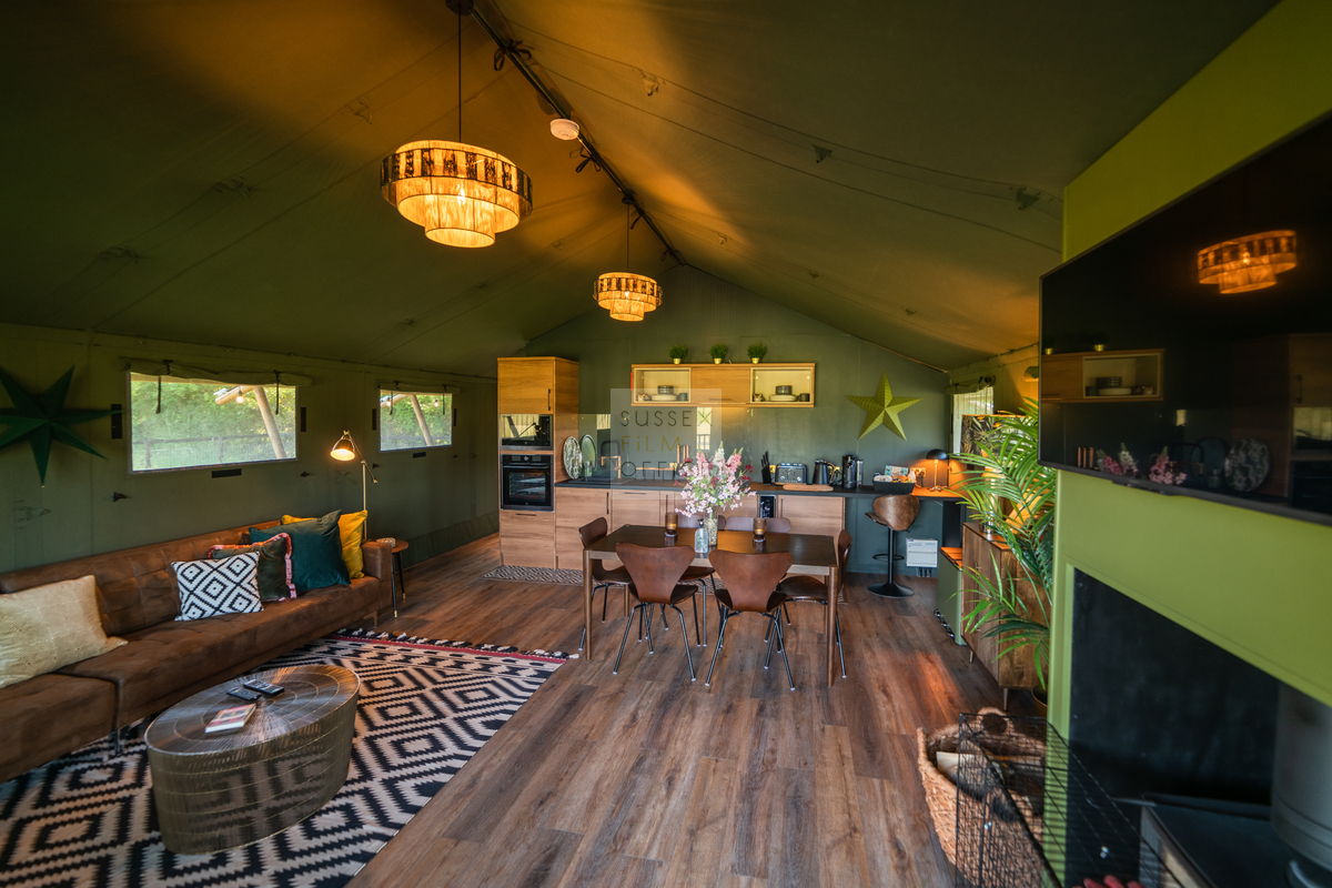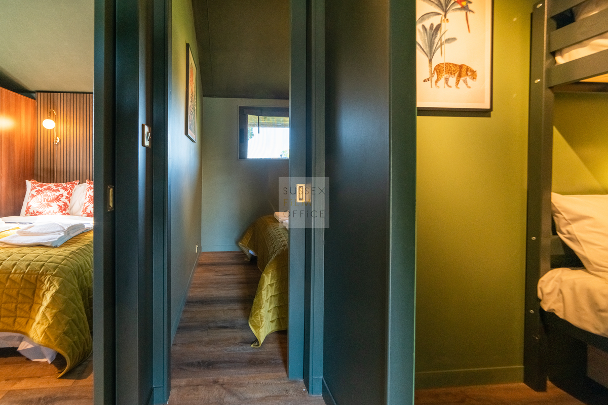 Luxury glamping retreat located down a very picturesque old country lane on a restored smallholding. The site is a nature lover’s haven set in idyllic surroundings, overlooking a 3 acre wildflower meadow and set against a backdrop of the majestic Malvern Hills. The retreat consists of 2 1920s-inspired safari lodges each with comfy sofa seating, 2 double bedrooms and two bunks, well-equipped kitchen, and a plumbed in bathroom with rainwater shower, and toilet. Wider facilities at the retreat include an on-site tented spa, secure gardens, electric hydrotherapy hot tubs, hammocks, nature area with willow dens and pond, safari jungle camp (in summer months – bell tent created as a craft tent with mini tents surrounding it decorated in a jungle theme), wooden adventure castle fort, and bikes for hire. Aside from the glamping area, there is a 17th century timber framed cottage, Malvern stone and weatherboarded barn, 4 bay oak garage, cottage gardens, kitchen garden, chicken coop in smaller meadow, utility barn, and an onsite private car park for up to 8-10 cars. A stunning location for filming and photography!