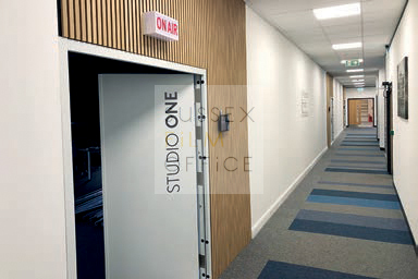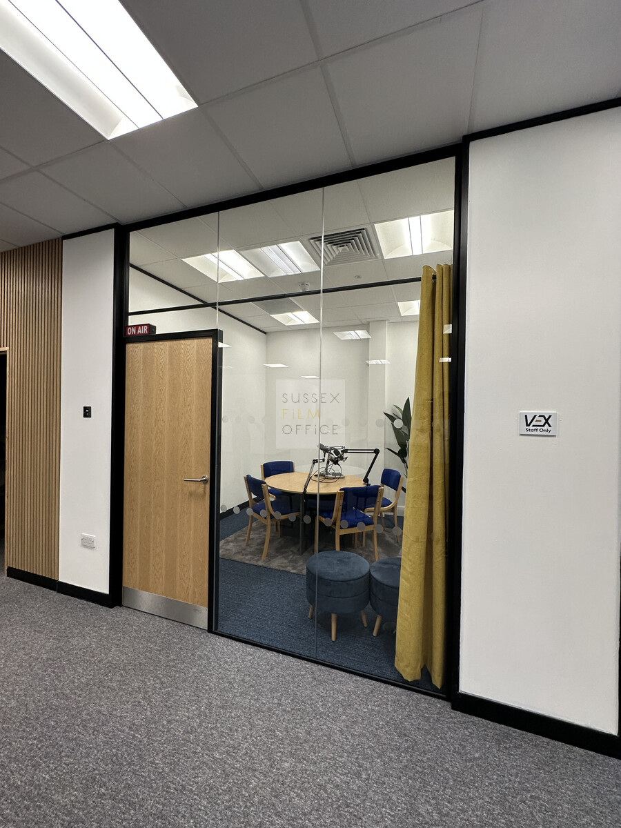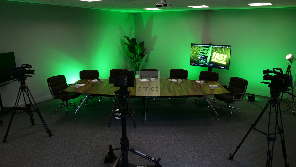 Premium venue for the production of videos, podcasts, greenscreen filming and live broadcasts. This large solar powered digital studio building includes studios, editing suites, conference suites, viewing gallery, dressing rooms, large car park, and a full-service creative digital/physical/hybrid conference production facility around it. Enjoy a studio experience that is built around you, from simple hire of the space through to full production and catering services for live events.