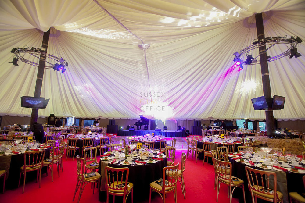 Stunning pavilion style event space on an estate set in the rolling hills of Worcestershire. With 875 sq. metres of space, it has a seating capacity for 500 people, reception area, 25 sq. metre stage, events lighting gantries, plasma screens and a PA system. A fantastic and unique location for filming and photography.
