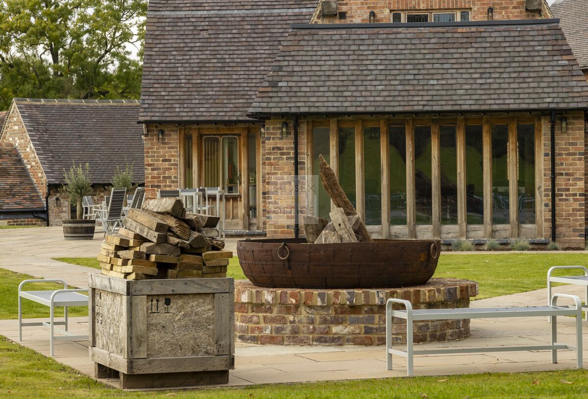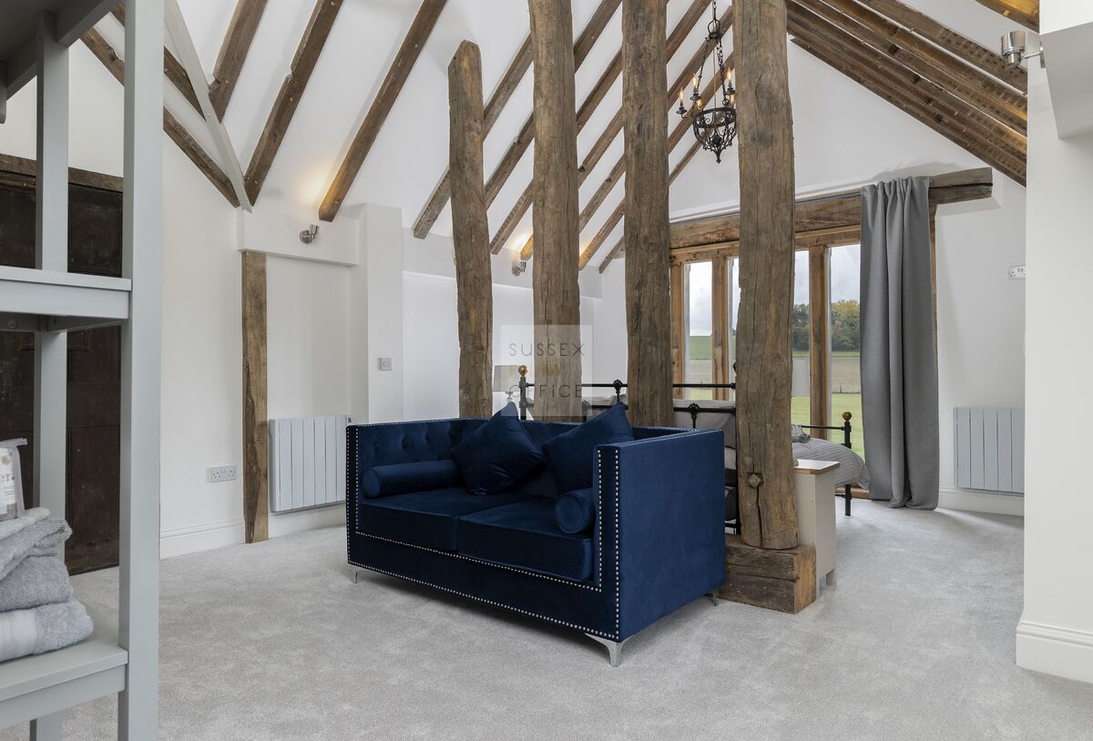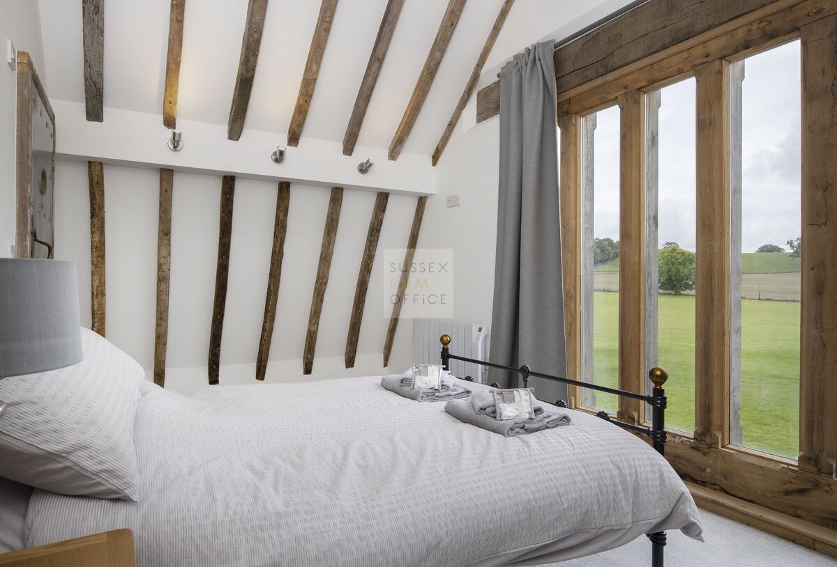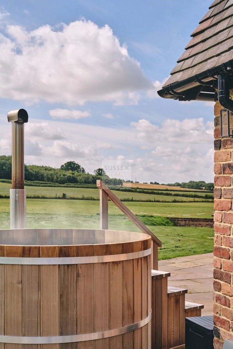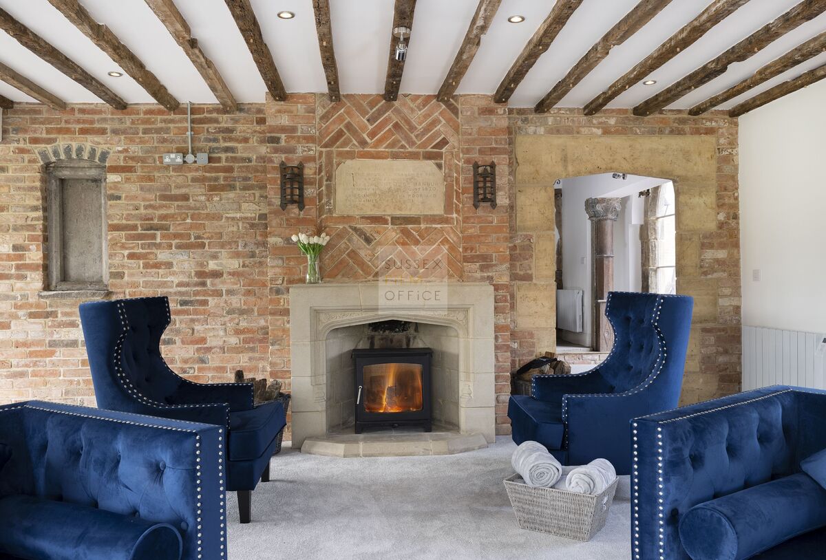 A stunning, oak framed, detached property with panoramic views from every room across unspoilt countryside, set within its own four acres. The house, situated off its own private drive and courtyard with a charming French square fountain, provides an abundance of characterful, tasteful and unique features. On the ground floor is the entrance hall, large bright kitchen, inglenook snug, sun room, dining room, formal sitting room, and cloakroom. The first floor comprises 3 bedrooms (1 with ensuite), and a shower room. Outside there is a South-facing rear patio with Swiss style wood fired hot tub, two monumental iron fire pits and barbecue, a range of outdoor seating, four acres of grounds including a stream and an orchard, a double garage, and electric car charging point. An absolutely stunning location for filming and photography!